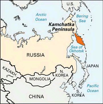 कामचटका प्रायद्वीप (Kamchatka Peninsula) उस क्षेत्र में आता है जहाँ धरती की परत की दो विशाल टेक्टोनिक प्लेट्स प्रशांत या पैसिफिक और नॉर्थ अमेरिकन प्लेट्स आपस में टकराती हैं।